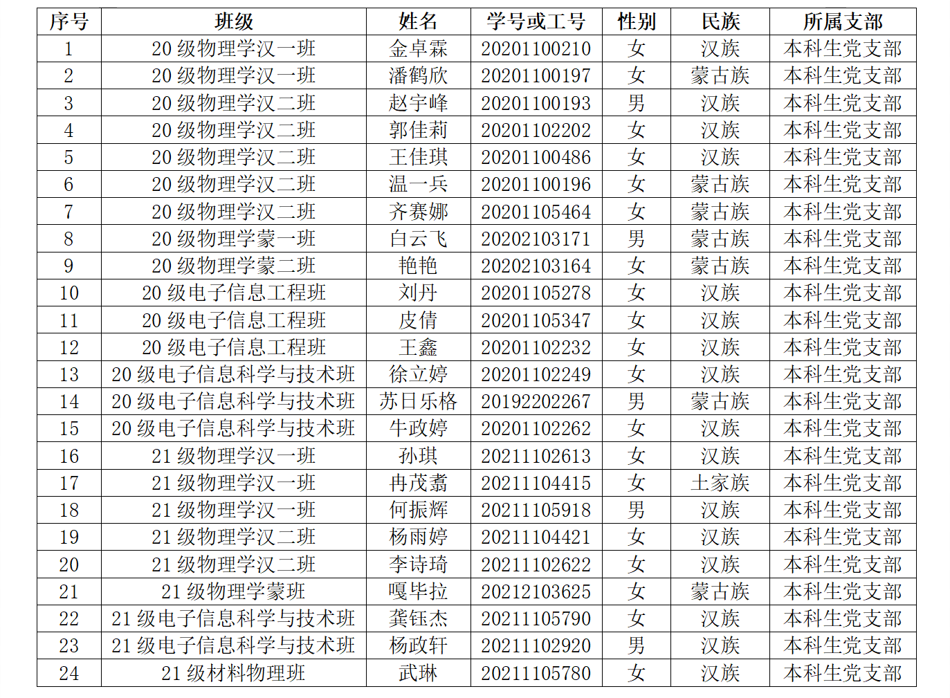 根据发展党员工作有关规定,经永利yl23411官网本科生支部召开支部委员会审查,金卓霖等24名同志预审合格,拟于近期召开支部大会讨论接收金卓霖等24名同志为中共预备党员。