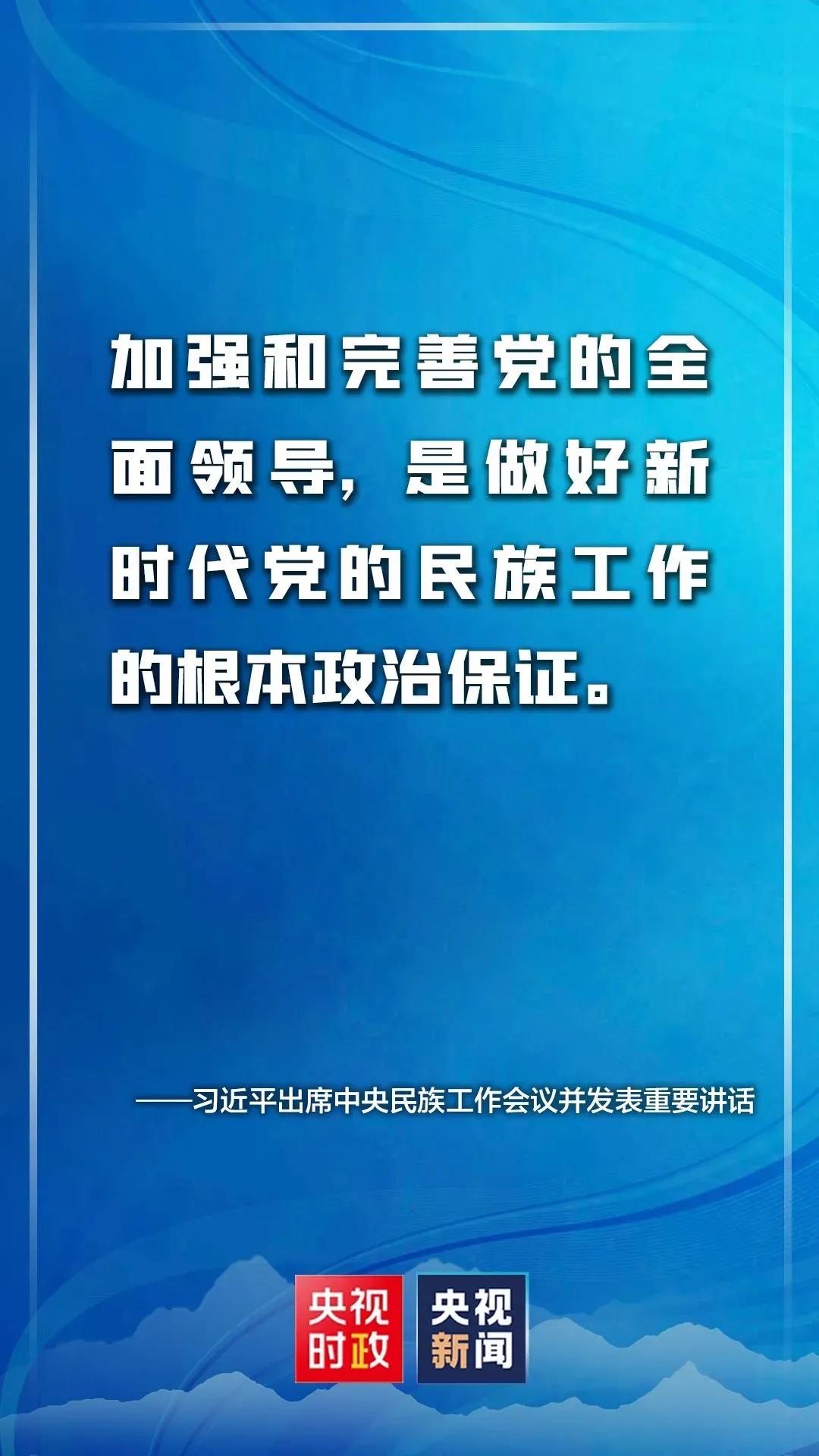 习近平指出,加强和完善党的全面领导,是做好新时代党的民族工作的根本政治保证。各级党委要增强“四个意识”、坚定“四个自信”、做到“两个维护”,不断提高政治判断力、政治领悟力、政治执行力,牢记“国之大者”,认真履行主体责任,把党的领导贯穿民族工作全过程,形成党委统一领导、政府依法管理、统战部门牵头协调、民族工作部门履职尽责、各部门通力合作、全社会共同参与的新时代党的民族工作格局。要加强基层民族工作机构建设和民族工作力量,确保基层民族工作有效运转。要坚持新时代好干部标准,努力建设一支维护党的集中统一领导态度特别坚决、明辨大是大非立场特别清醒、铸牢中华民族共同体意识行动特别坚定、热爱各族群众感情特别真挚的民族地区干部队伍,确保各级领导权掌握在忠诚干净担当的干部手中。要更加重视、关心、爱护在条件艰苦地区工作的一线干部,吸引更多优秀人才。要重视培养和用好少数民族干部,对政治过硬、敢于担当的优秀少数民族干部要充分信任、委以重任。要加强民族地区基层政权建设,夯实基层基础,确保党的民族理论和民族政策到基层有人懂、民族工作在基层有人抓。