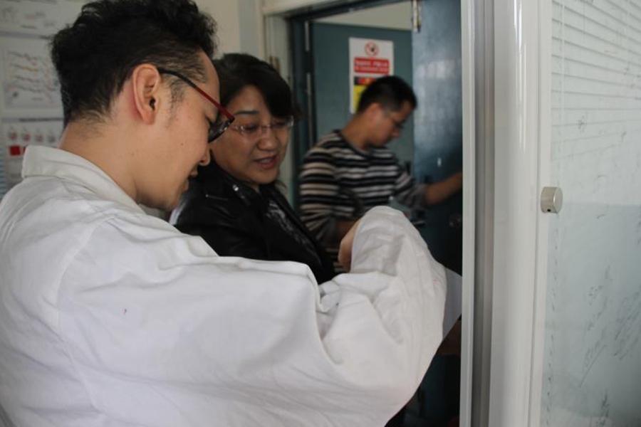 随后何小龙老师、刘美玲老师及实验室负责老师对实验室进行检查。此次检查对实验器材是否安全,实验室的用电是否符合标准,实验仪器使用、保存等相关问题进行重点查看。同时,要求实验室管理老师要“制度上墙”,提高实验者的安全意识,并且强调要做好出勤记录工作,确保实验室的规范使用。