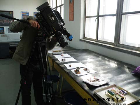 4月22日早九点,内蒙古卫视晚间报道记者来永利官网采访永利官网关于学生学术科技创新成果及义务维修活动情况。张伟老师带领学生会及科技协会成员参加采访。记者先后参观了家电维修部与永利yl23411官网创新实验室,实践与创新实验室始建于2004年,旨在为爱好电子设计与制作的同学提供一个舞台,为我们学有余力的同学提供了一个实践知识、提高动手能力的平台。赵佳哲、杨桂全、包文君、彭鹏分别介绍了此次学术科技创新活动获奖成果,记者也对实验室的陈列项目产生了浓厚的兴趣。大家被科技的魅力深深吸引着以至于一个小时的时间不知不觉过去了,我们相信在全体师生的努力下,永利官网学生的学术科技创新成果一定会加辉煌!