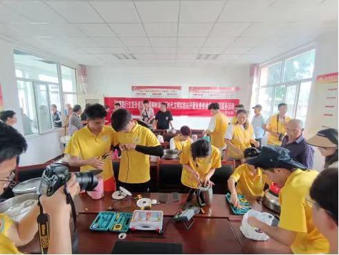 7月12日,土右旗新时代文明实践中心组织永利yl23411官网和内蒙古农业大学机电工程学院学生组成的志愿服务队深入双龙镇柳树淖村开展暑期大学生“三下乡”志愿服务活动,为柳树淖村村民进行免费维修家电。